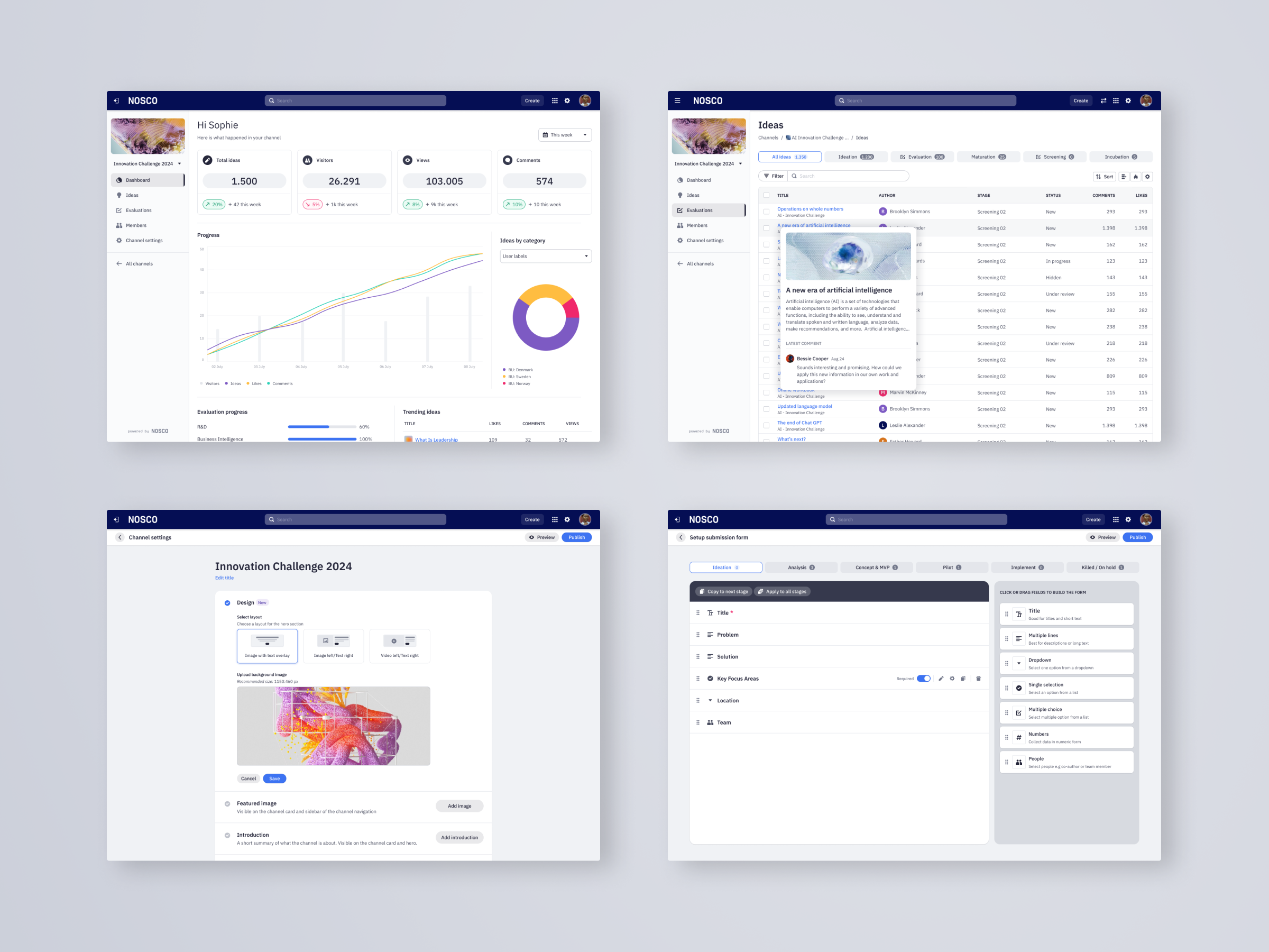 Nosco is an online innovation management and collaboration platform that enables enterprises to collect, evaluate, mature and incubate ideas across organisational and geographical borders. Thousands of users across the globe use Nosco to drive innovation within their organisations. Clients include brands such as H&M Group, Orsted, MIT, Novo Nordisk or Velux.